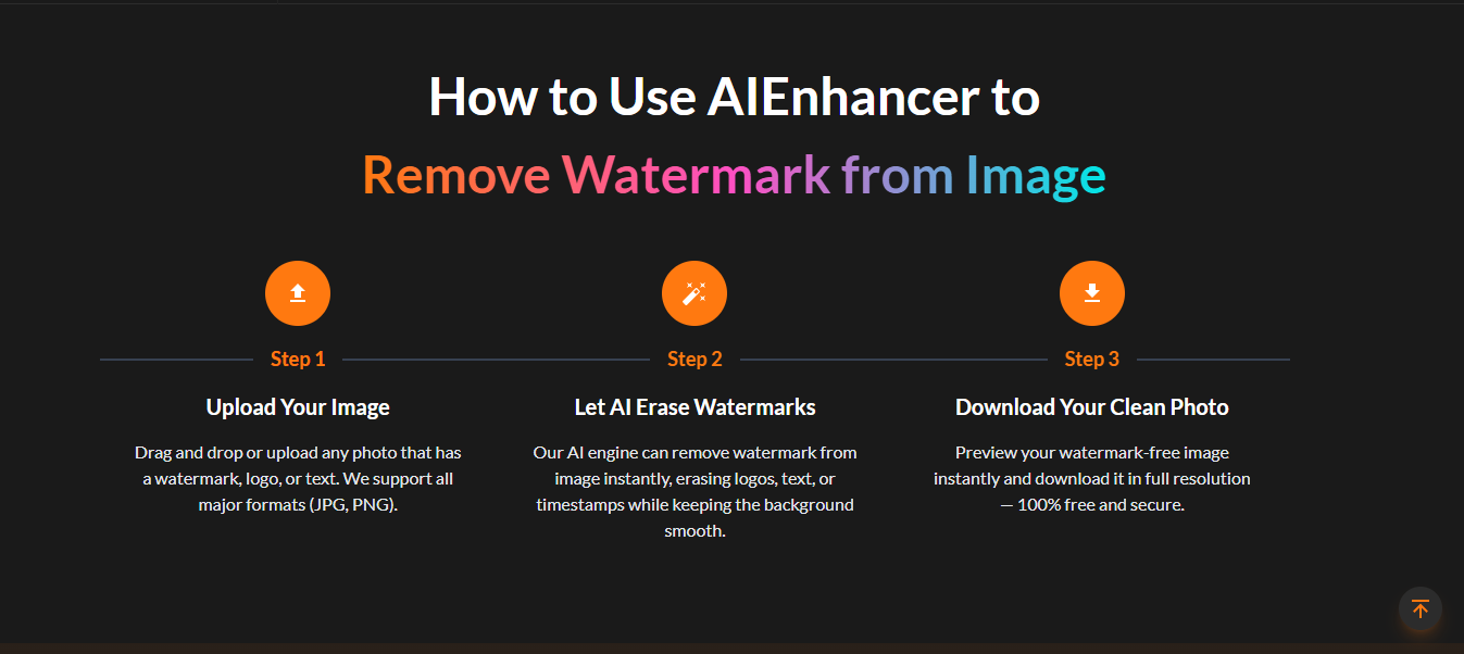 Teams rarely work with one image type. Screenshots, photos, illustrations, and mixed graphics are often processed together. AIEnhancer applies the same watermark remover logic across these formats, which produces predictable results and simplifies quality control.