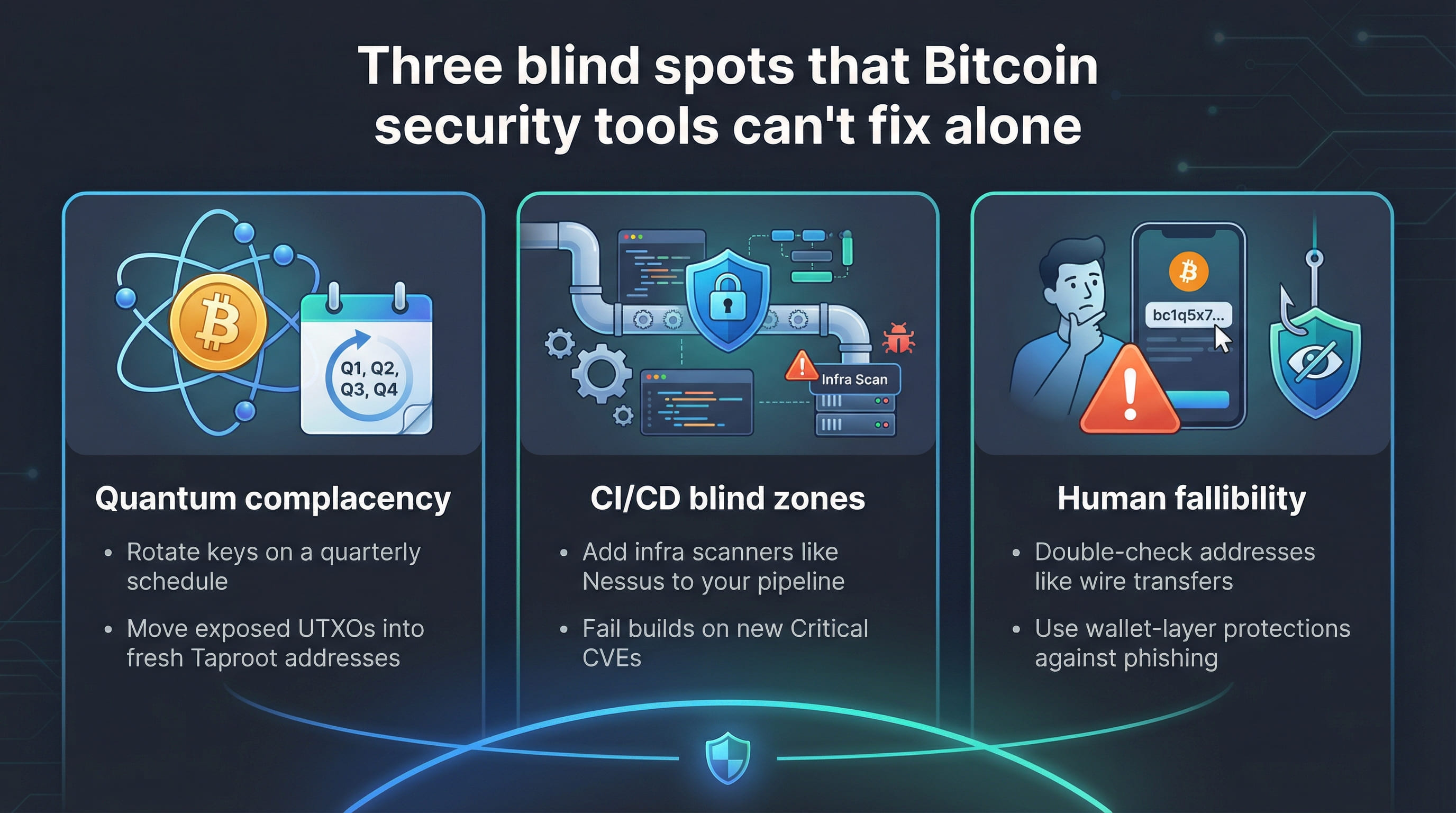 No single tool, or even our top six combined, covers every crack in Bitcoin security. Each scanner lights one area, leaving others in shadow. Before we finish, here are three blind spots and quick habits that close them.
