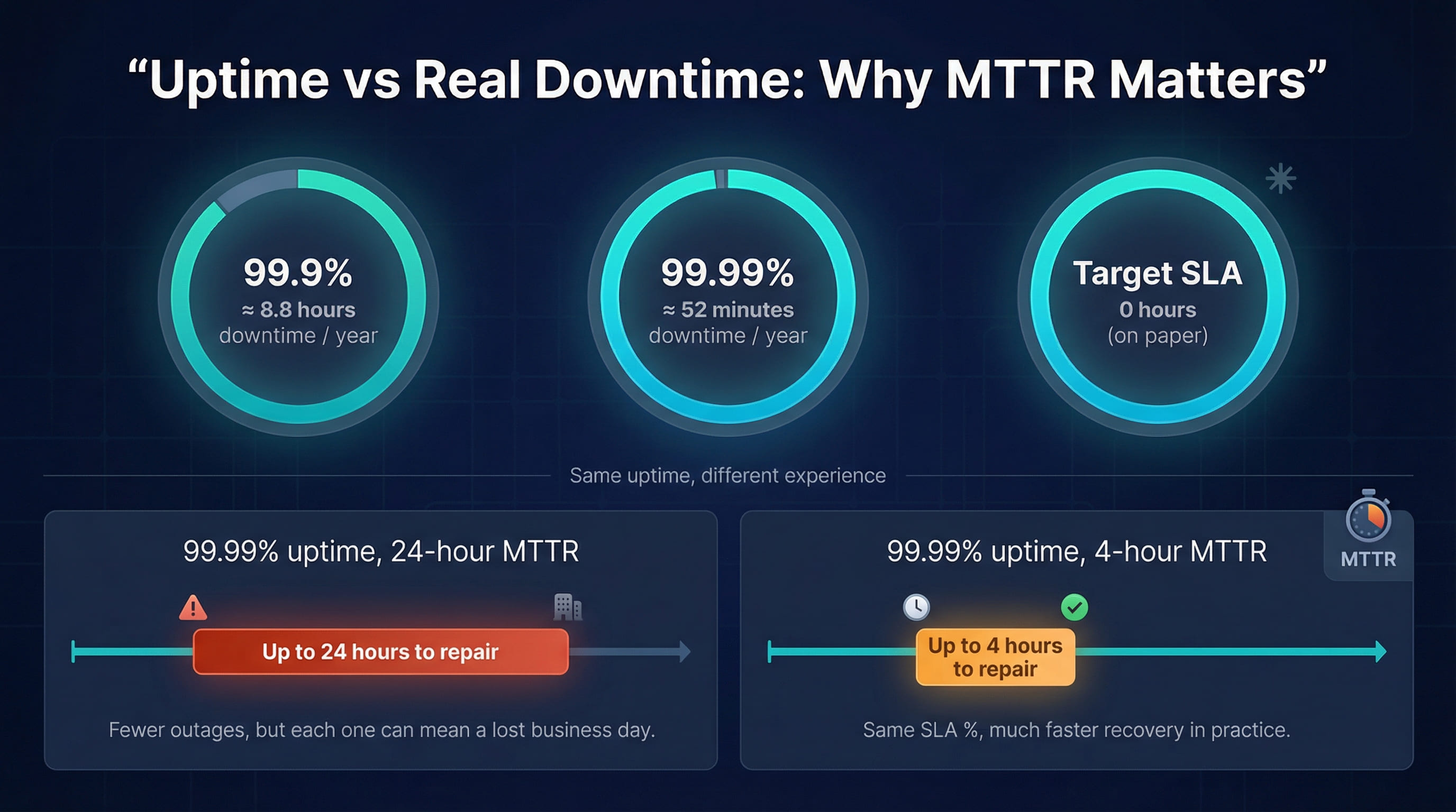 Focus on mean time to repair. A 99.99 percent uptime promise is hollow if the carrier allows 24 hours to fix an outage. Push for a four-hour MTTR or better and ensure credits apply automatically.