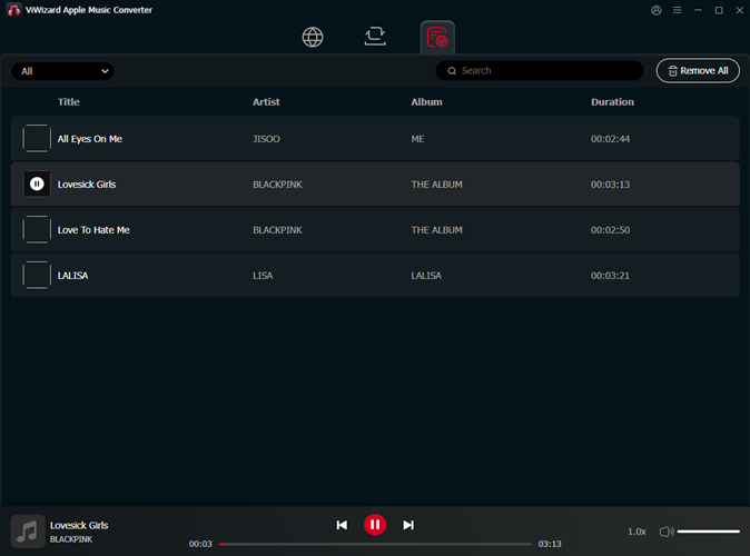 Now, simply browse your Apple Music library, playlists, or search for the songs you wish to convert. You can then drag and drop your chosen tracks, albums, or entire playlists directly into the button Add of ViWizard.