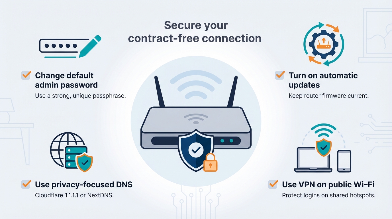 Before you pick a plan, lock down security. Our quick secure-home-internet checklist covers strong passwords, router updates and other easy wins—then dive in and find the flexible service that fits your life.